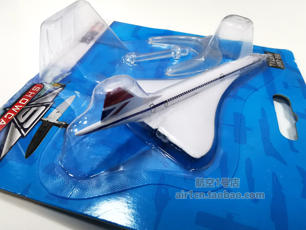 【宝贝比例】:1:400 【宝贝品牌】:CORGI(英国品牌,狗仔) 【宝贝名称】: 协和号超音速客机 Concorde 法国宇航和英国飞机公司联合出品 【宝贝材质】:合金机身机翼 / 塑料底座配件 【宝贝尺寸】:机身长: 14cm,宽: 6cm,高: 3cm; 【宝贝重量】:0.09KG 【宝贝包装】:全新包装 【宝贝说明】:狗仔的模型很精致,合金制作的,螺旋桨都可以活动。 注意:包装盒没有写比例,估计是 1:400左右。